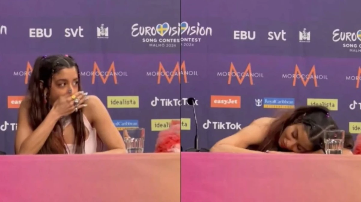 Eurovision 2024’te Yunanistan adına yarışan Marina Satti, İsrailli yarışmacı Eden Golan’ın da yer aldığı basın toplantısı sırasında rakibi konuşurken uykuya daldı!