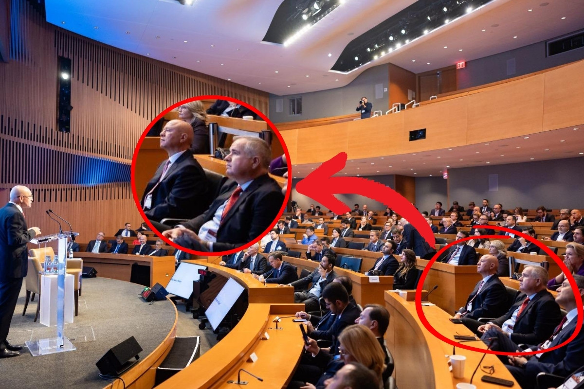 Şimşek’in paylaştığı karede Koç Holding CEO’su Levent Çakıroğlu ile Sabancı Holding CEO’su Cenk Alper’in yan yana oturarak sunumu takip etti.