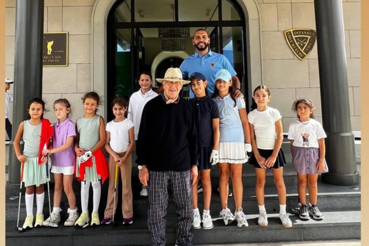 Turnuvaya katılan genç golfçülerle hatıra fotoğrafı çektiren Rahmi Koç, her zamanki gibi çok şık giyinmişti. Krem renkli kenarlıklı şapkası, fuları, siyah renkli kazağı ve beyaz çizgili siyah kareli pantolondan oluşan kreasyonunu beyaz tabanlı ayakkabıları ve klasik saatiyle tamamlamıştı. Genç golfçülerle birlikte olduğu için oldukça mutlu görünüyordu.